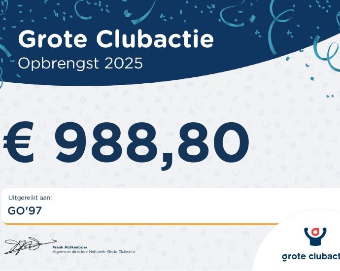De Grote Clubactie heeft dit jaar € 988,80 opgeleverd voor GO’97! Een super mooi bedrag, dat we gaan gebruiken voor de aanschafLees verder…
